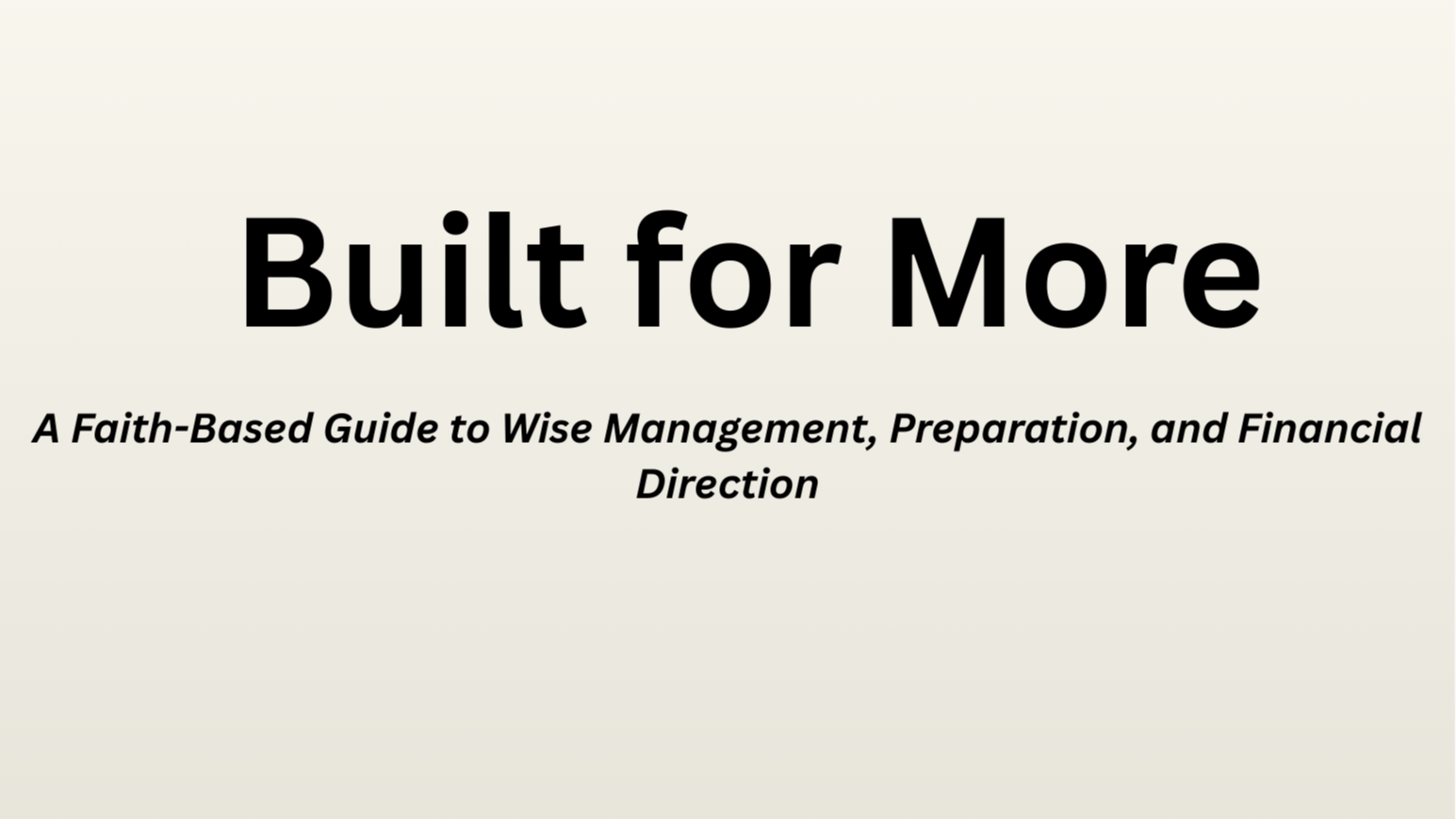 Faithful With What Is Given focuses on engaging wisely with what is already in your care. Preparation Is Wisdom reframes readiness as biblical discipline rather than reaction. Built for More connects faithful planning and obedience to long-term freedom and Kingdom impact.